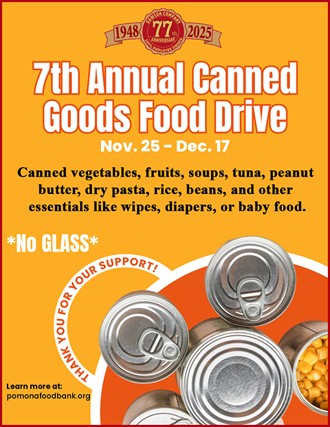 As a company, we feel blessed to give back and help make a difference in the community we serve. We encourage you to learn more about their impactful work and consider supporting them at pomonafoodbank.org.